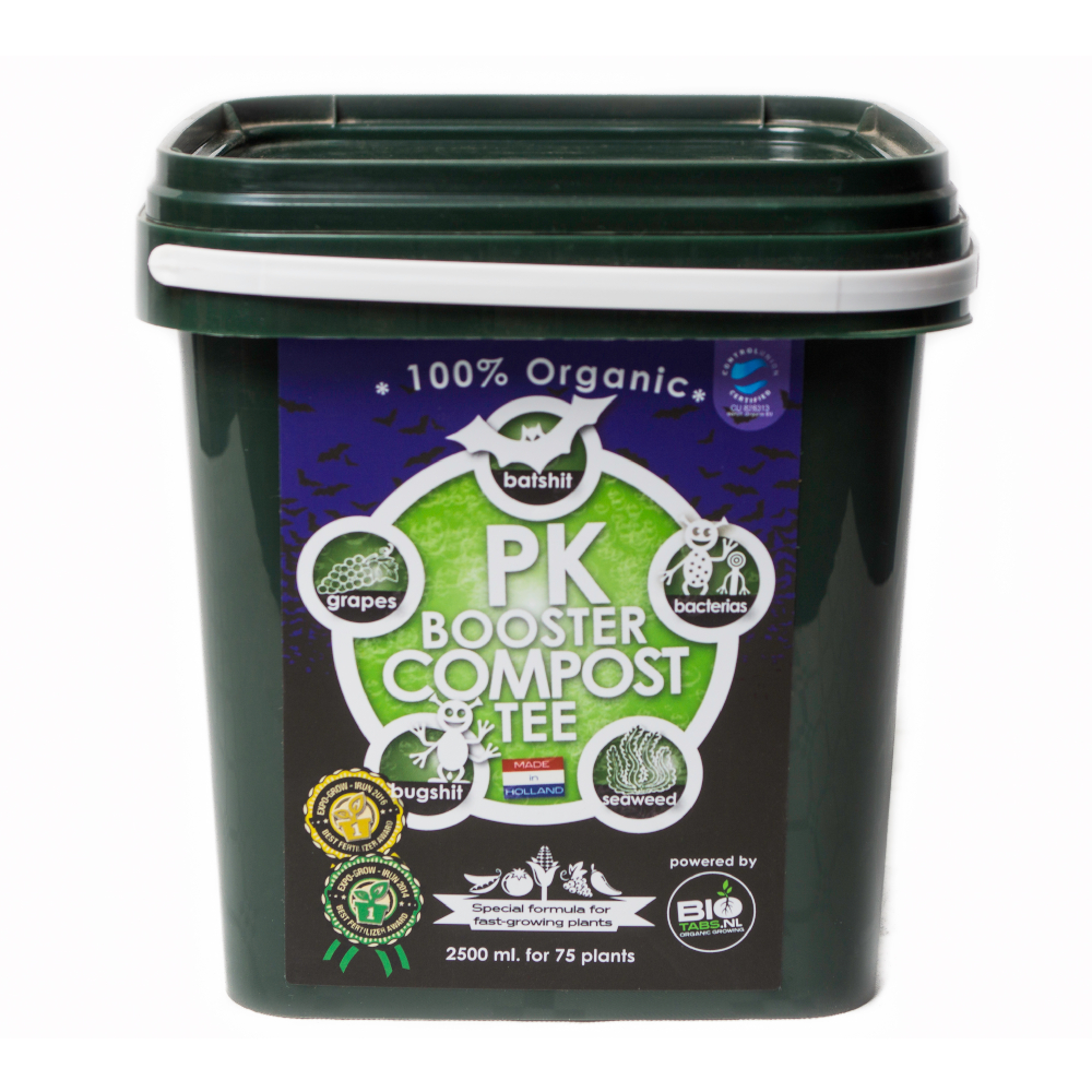 PK Booster Compost Tea de Biotabs es un potenciador de floración sólido a base de fósforo y potasio, 100% orgánico.