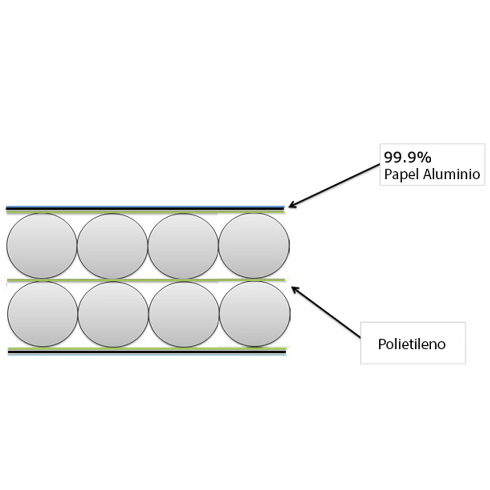(Resistente al fuego clase A), reflectante de primera calidad (+ del 97% de reflexión) y una capa de doble burbuja