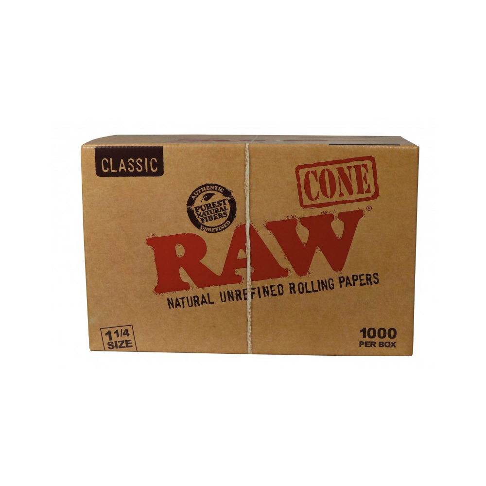 Caja de 1000 conos pre-enrollados de Raw, listos para rellenar, prensar y fumar.