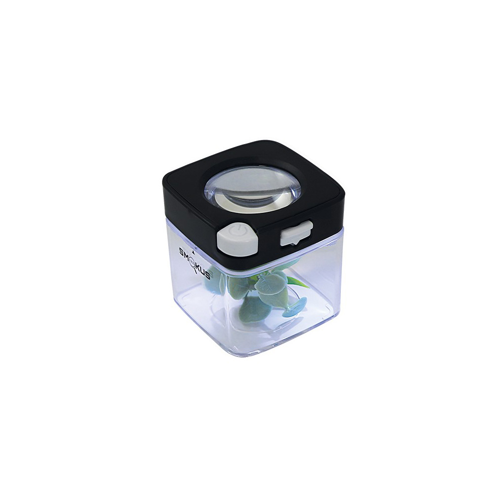 Frasco hermético más moderno y asequible. Consta de un lente de aumento en la parte superior de la tapa además del botón de encender y apagar la luz led con la que te permitirá apreciar el interior del bote.