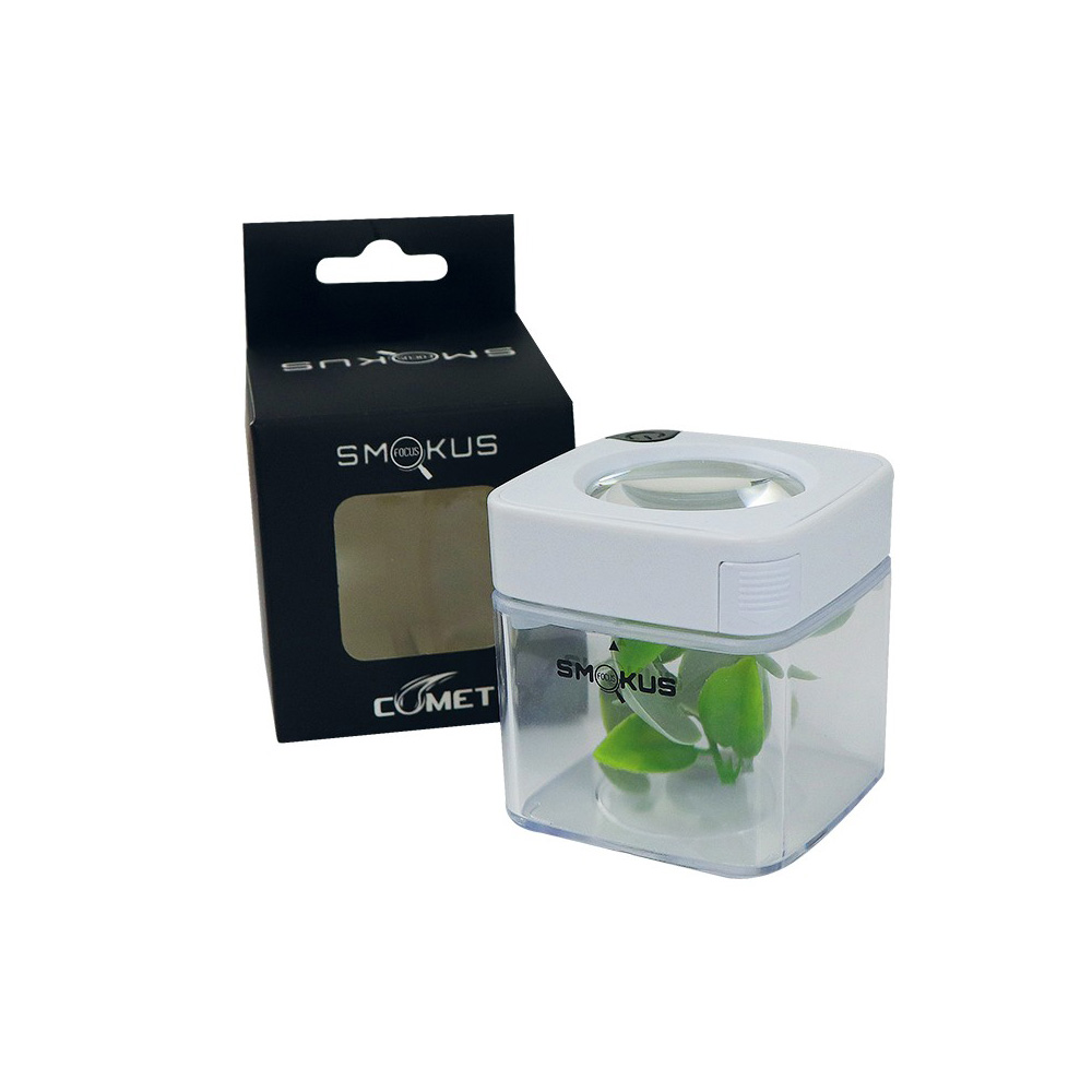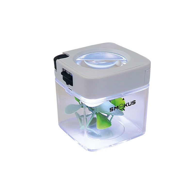Frasco hermético más moderno y asequible. Consta de un lente de aumento en la parte superior de la tapa además del botón de encender y apagar la luz led con la que te permitirá apreciar el interior del bote.